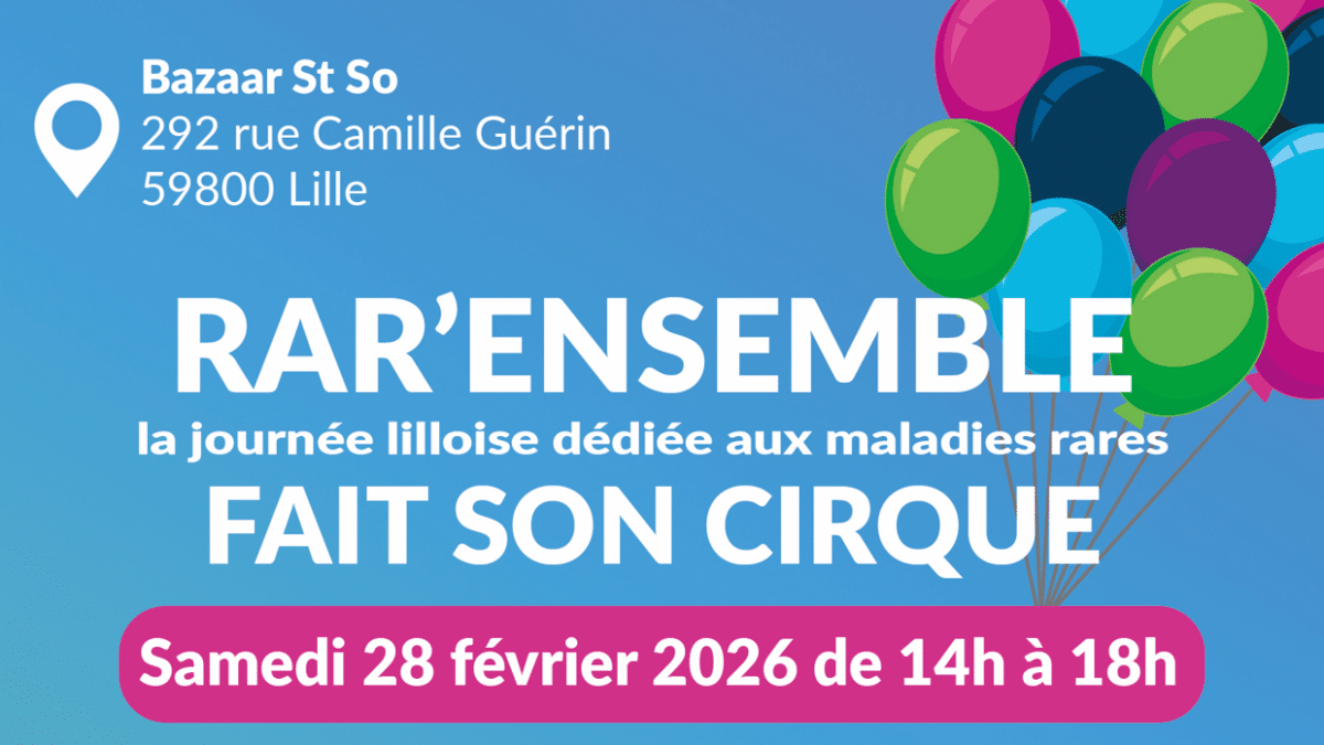 La journée lilloise dédiée aux maladies rares fait son cirque ! La PLateforme d’Expertise Maladies Rares des Hauts-de-France (PLEMaRa), vous donne rendez-vous le samedi 28 février 2026 de 14h à 18h au Bazaar Saint-So à Lille, pour sa nouvelle édition de RAR’ENSEMBLE à l’occasion de la Journée Internationale des Maladies Rares.